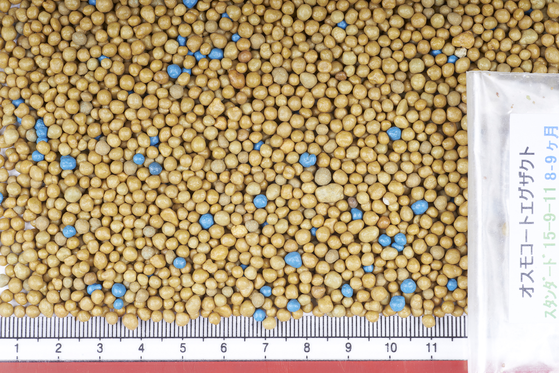上記の粒写真、青い粒は8-9ヶ月タイプの印、植物由来の樹脂で被膜されている
